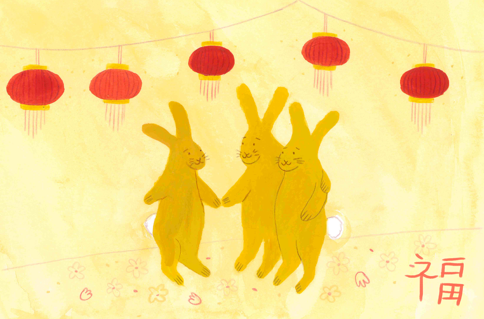 Illustrations for Manchester Metropolitan University's corporate e-cards, celebrating the Chinese Lunar New Year 2023. These cards featured motifs to celebrate the zodiac year of the rabbit.